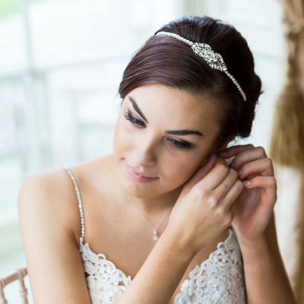 Taking centre stage, the ornate diamanté encrusted showpiece has a slight vintage feel, which allows it to be worn with all bridal ensembles and every wedding gown.